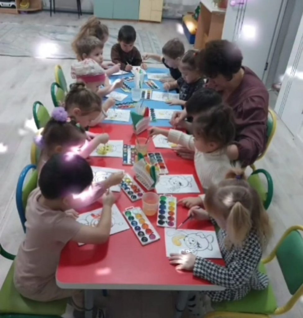 «Күннің екінші жартысында балалардың шығармашылық дағдыларын дамытуға бағытталған іс-әрекеттер жүргізіледі. Сабақтар балалардың қиялын, ұсақ қол моторикасын, көркемдік талғамын және дербестігін дамытуға ықпал етеді, сондай-ақ әрбір баланың өзін-өзі көрсетуіне және шығармашылық әлеуетін ашуына жағдай жасайды.»