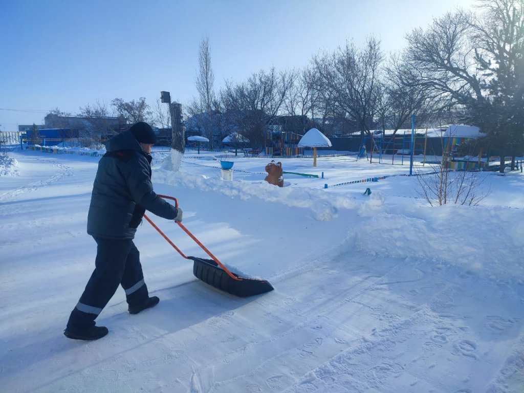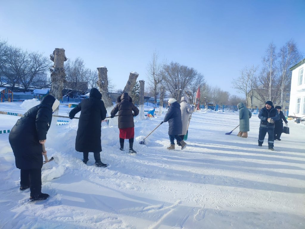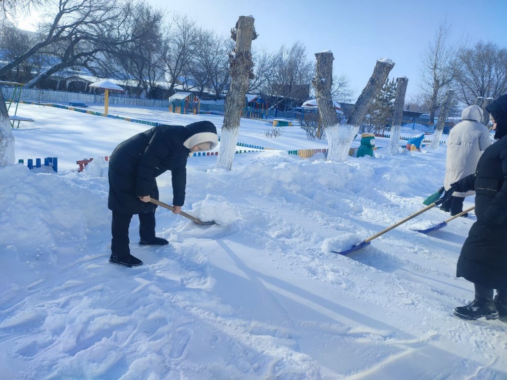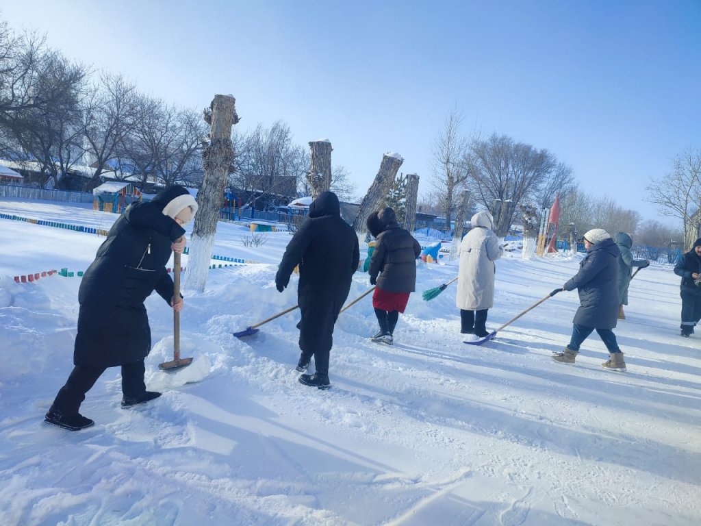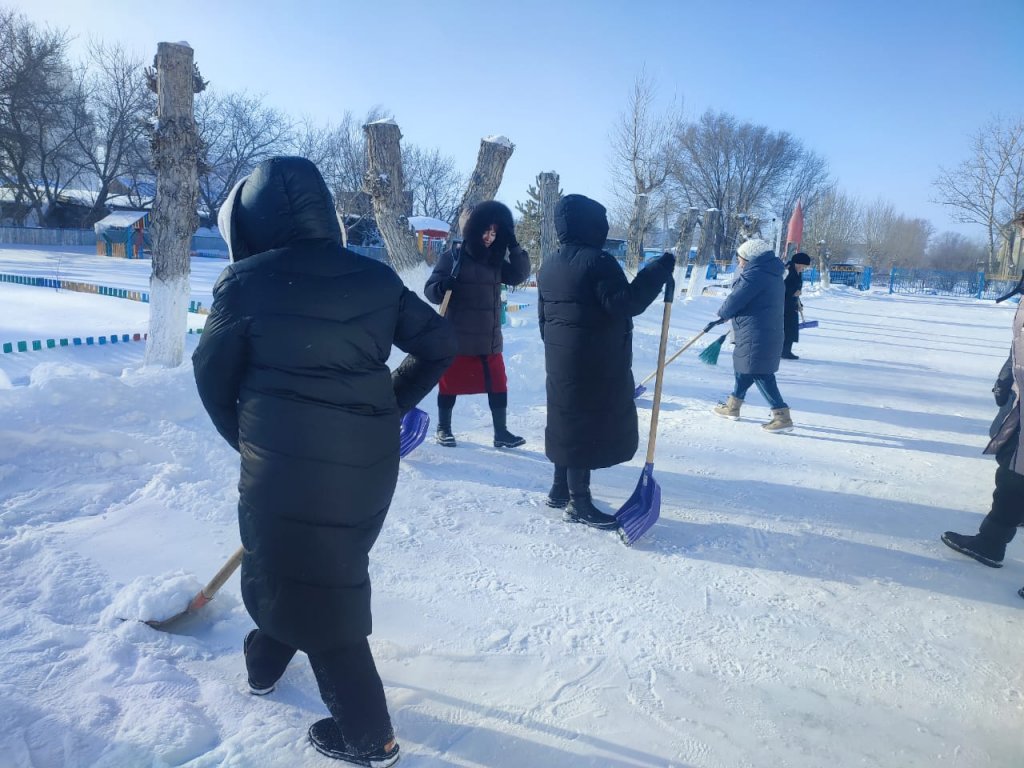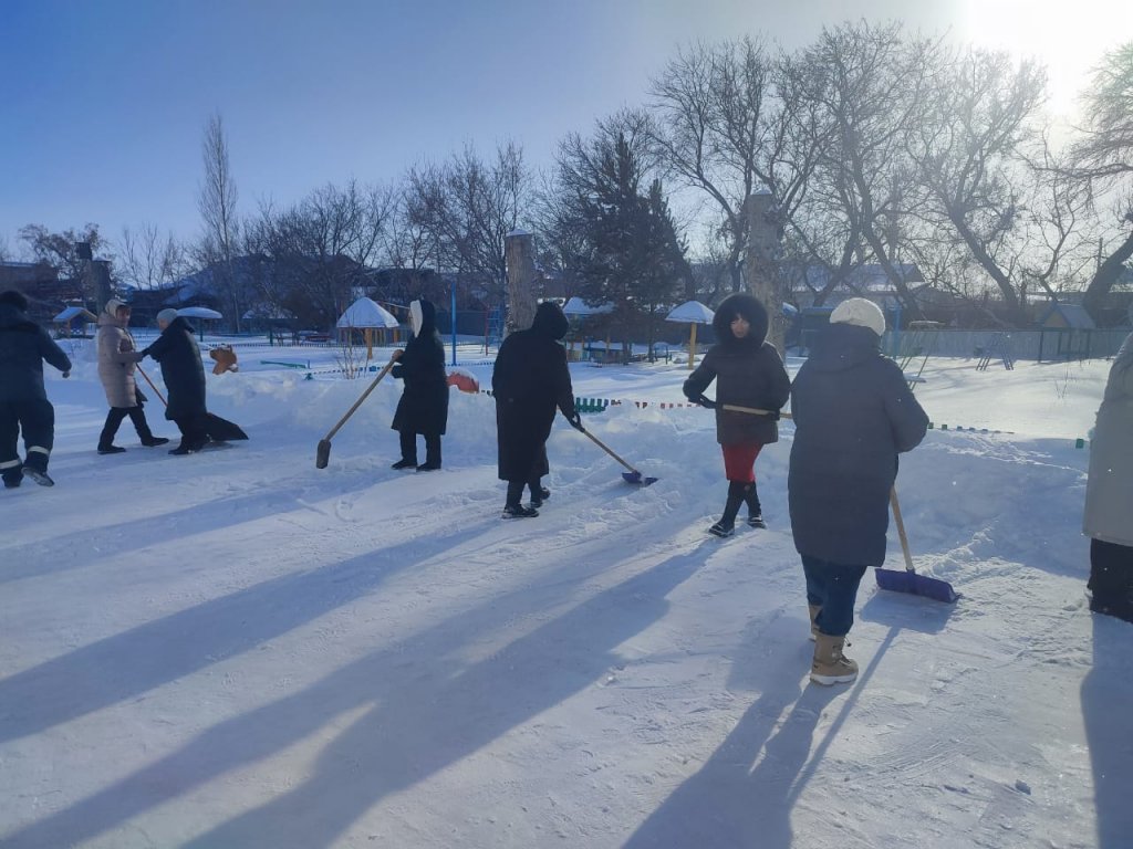 "Айгөлек" бөбекжай-бақшасы МКҚК ұжымы ауланы және оған іргелес аумақты қардан тазарту бойынша сенбілікке белсенді қатысты.